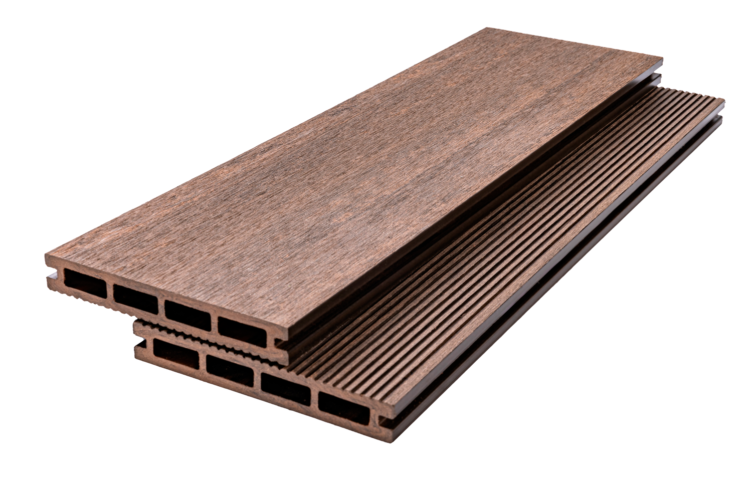 Террасная доска ДПК Bamberg Square, Brazilian Walnut имеет пустотелую конструкцию, что делает ее легкой и удобной в укладке. Благодаря этому, установка террасы из данного материала не требует особых навыков или специального оборудования. Кроме того, пустотелая конструкция обеспечивает отличную вентиляцию и дренаж, что помогает предотвратить скопление влаги и уменьшить риск появления грибка и плесени.