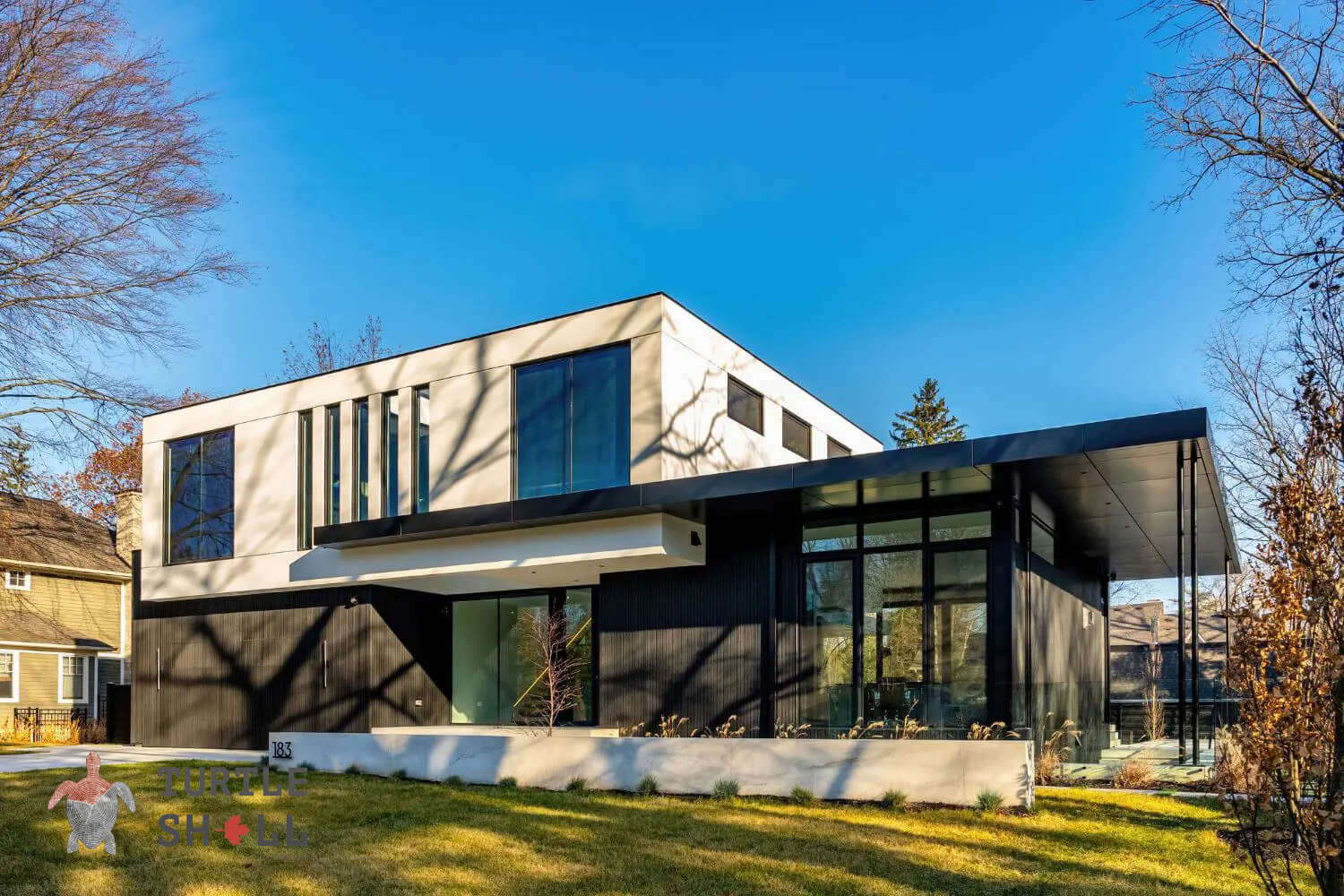 * Изысканный дизайн: Уникальная структура и текстура реечных панелей Turtle Shell создают неповторимый визуальный эффект. Отделка в сером цвете Faroese Smokewood добавляет элегантности и современности вашему фасаду.
